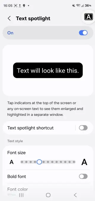 - Text Spotlight: You can expand and highlight any text with a single tap. It even lets you tweak the colors, size, and more based on your requirements.