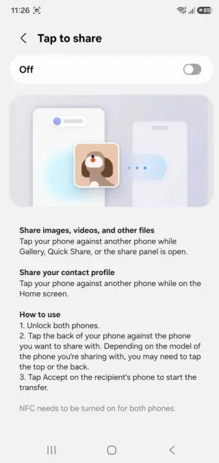 Samsung’s much-awaited Airdrop rival will debut with the One UI 9 update. Called Tap To Share, you need to tap your phone close to another device, and the files will be transferred. This feature will let you use NFC to transfer files between devices. And it’s not just limited to files, as you can also share contacts with integration into Quick Share.